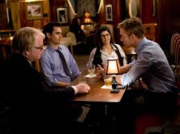 This being the first reason why I think the actors have such a particularly important figure here, now I'd like to add the well-written screenplay to the discussion. The Ides of March comprehends an intricate and in general well driven plot, which even ends up leaving you in the limb that divides the political drama and the political thriller. It opens with a very well paced twenty-minutes, with proper exposition, nicely economical, and finishes in a most fantastic third act. From the end of the first act until some point I'm not going to spoil you about, it may thank the cast for overcoming some common places and by making them yet enveloping. After this middle unexpected point (could've been much more melodramatic than it was), it is great to find that you're always wrong regarding what happens next, providing a successful way to handle the need to awake hypothesis in the mind of the audience. Although I believe in everything I've written so far, in the end I think what we will remember more intensely is not the plot or the twists, but the arch of Goslin's character, especially because of moments like the one in the kitchen, with Clooney's, when the writing (or the producing ?) surprises you by not making the latest the ultimate pretty adamant idealist politician, arising a good inner struggle in our protagonist (and avoiding an expected cliched development of Governor Morris). About the characters, I only have my doubts about the girl and her actions regarding her true situation - does it sound real, coherent ?