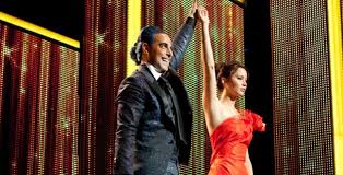 Katniss) is absolutely marvelous - this is a young-people blockbuster in which the protagonist spends maybe half of the second act barely speaking. As far as I'm concerned, its strongest asset is the romantic metaphor: Katniss-Gale's love story is absolutely cliché and fake. And that's it, that's what Katniss wants. She's been learning it from the flames during the pageant, from the great talk-show scene, from Haymitch's advices and foreshadowing after foreshadowing we watch her fool the world and her partner Gale, because although they're archetypally bound, she always knew that working that fake romance would bring audiences, claps, sponsors and, ultimately, a great surprise during the climax. You can go beyond and add some meta-narrative connotations: all the obstacles and magical potions the engineers arrange in order to propel the drama are the solution for the wearied or coincident nature of some of the steps or sub-steps of the hero's journey when applied to the adventure genre. It ends in a great tone, with a very strong simple moment for the antagonists and with a captivating hook for the protagonists. I'll be waiting for the next one.